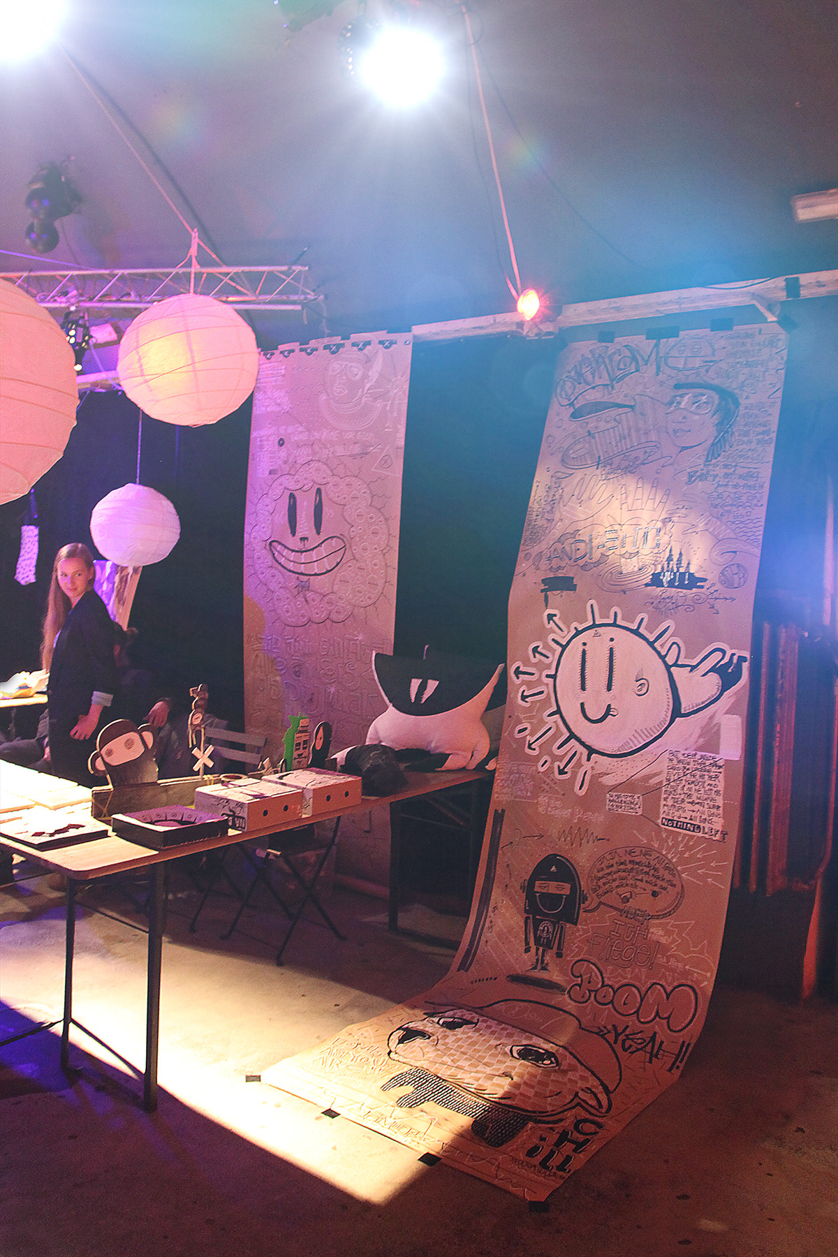 My illustrations reflect different thoughts and parts of movies (Momo & Peter Pan). It was drawn in about 4 hours and was afterwards cut into pieces to sell it or given away for free. Some parts that didn´t find a new owner will be glued to the lovely walls of Hamburg city this winter. Stay tuned and true to yourself you mellow fellows!